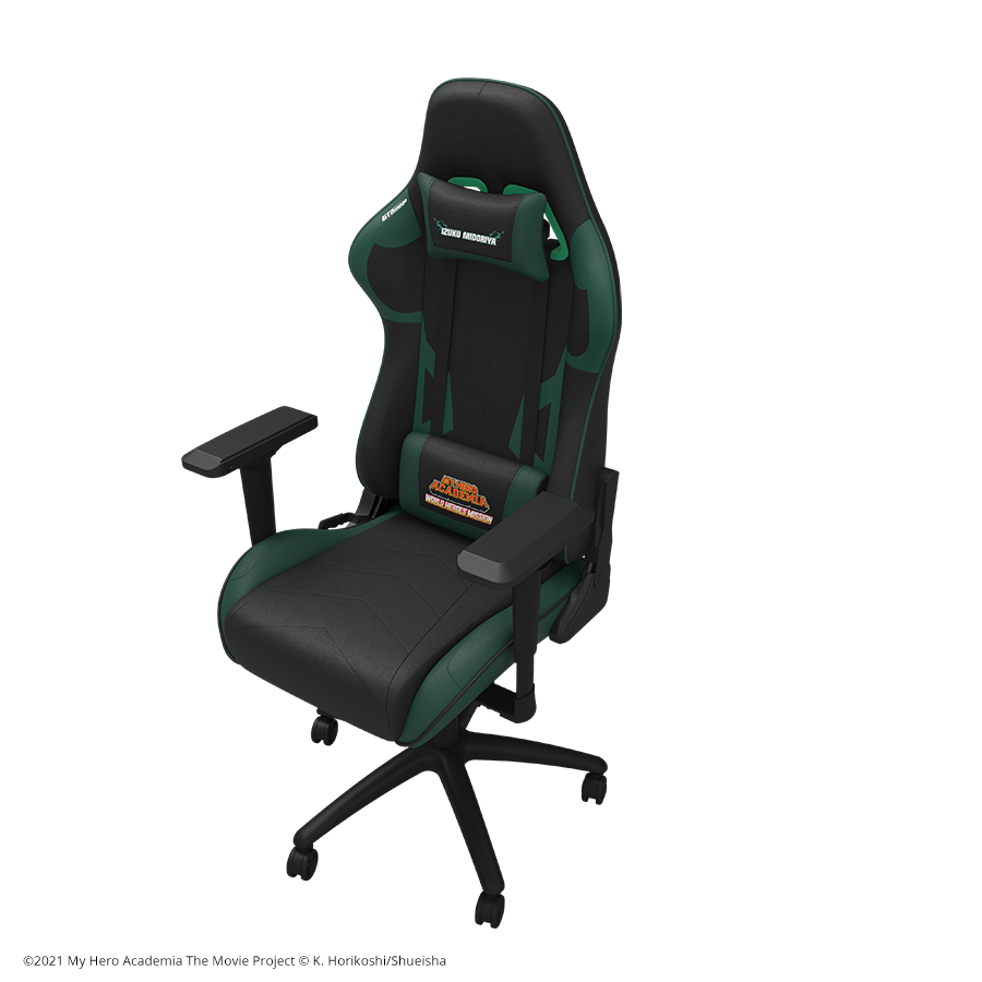 The officially licensed My Hero Academia Gaming chairs offer the utmost in luxurious comfort and style. Included are removable lumbar and neck support cushions, fully adjustable 4D arm rests and a full tilt and recline mechanism featuring height control. All of this makes it easy to find the perfect position for hero work or play.