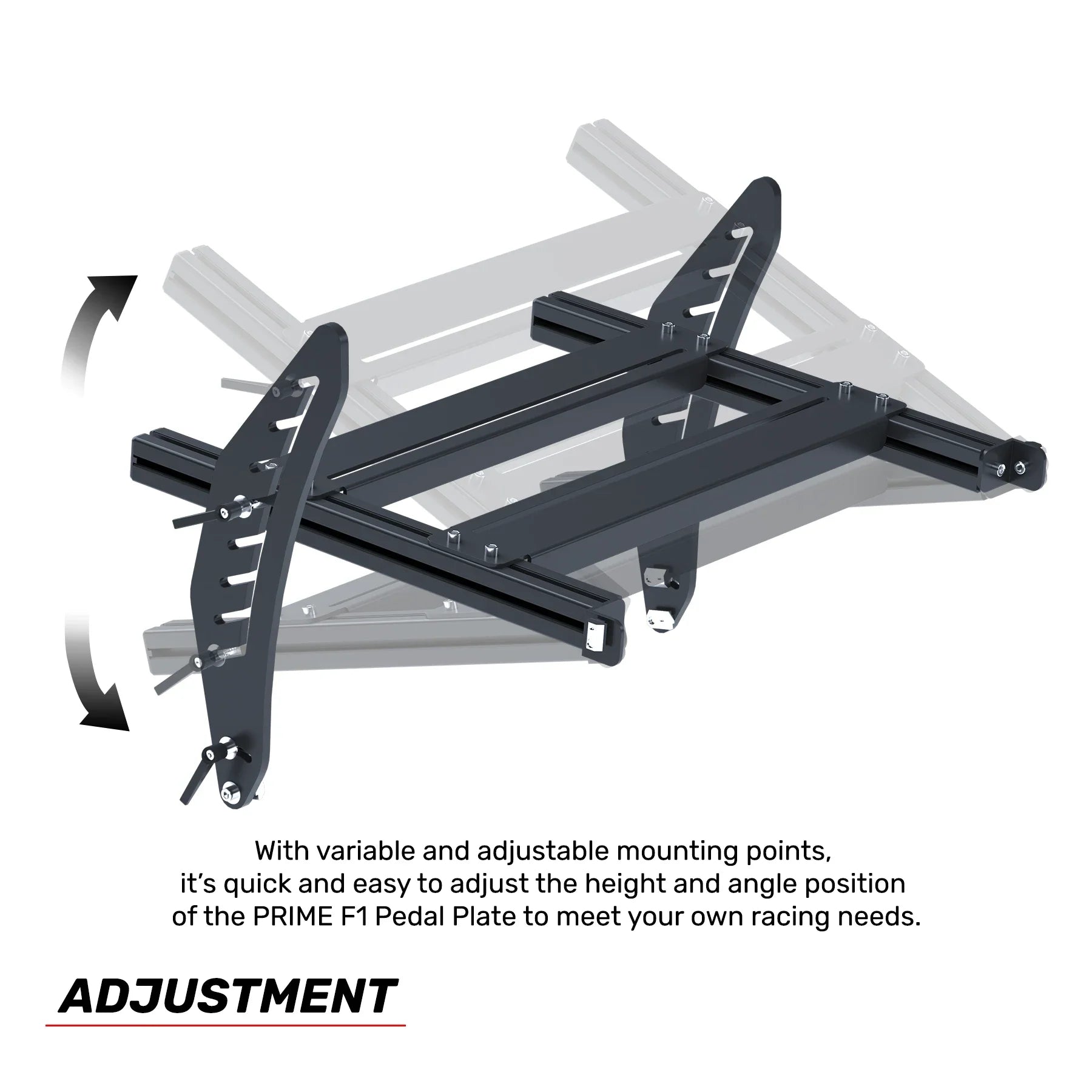 With variable and adjustable mounting points. It's quick and easy to adjust the height and angle position of the PRIME F1 Pedal Plate to meet your own racing needs.