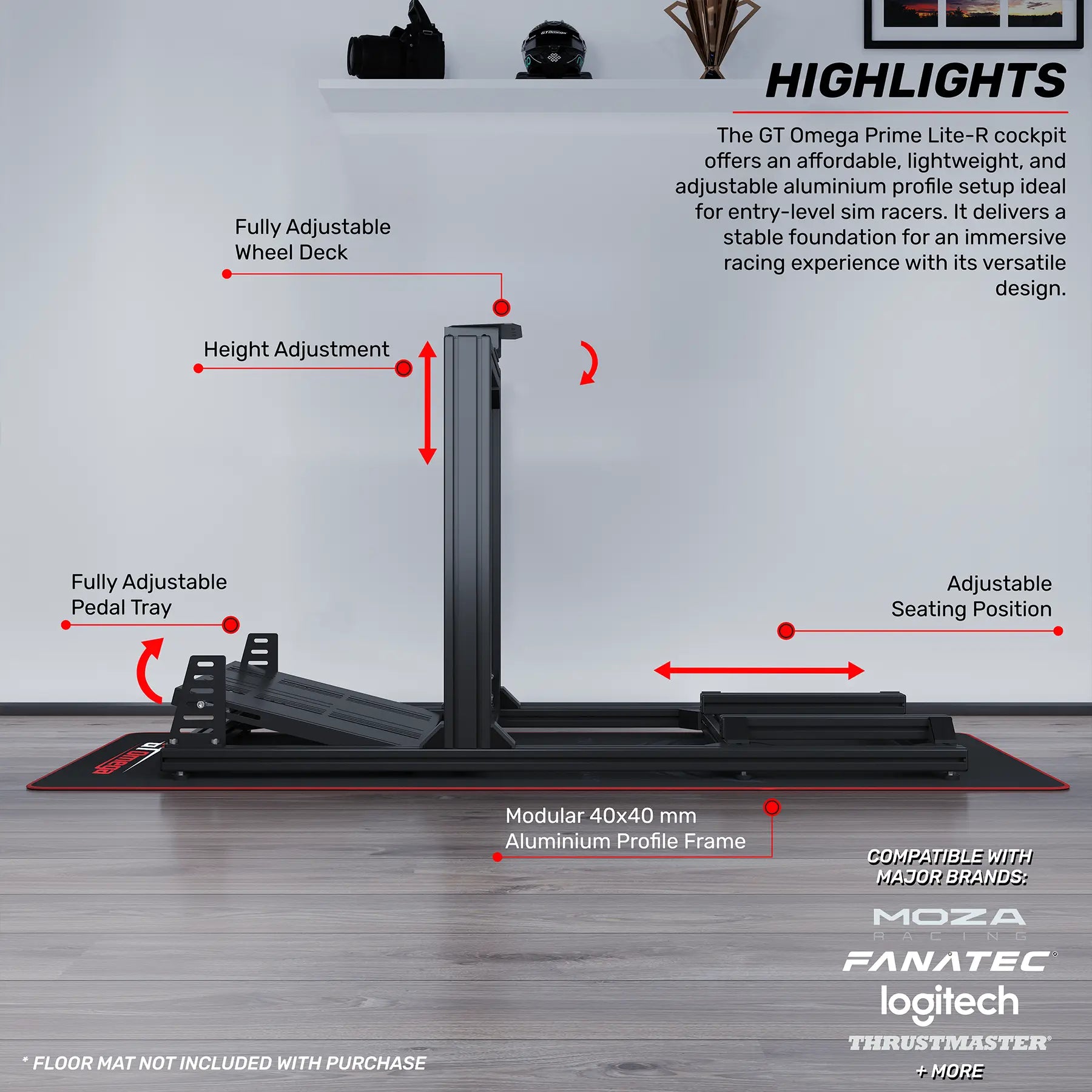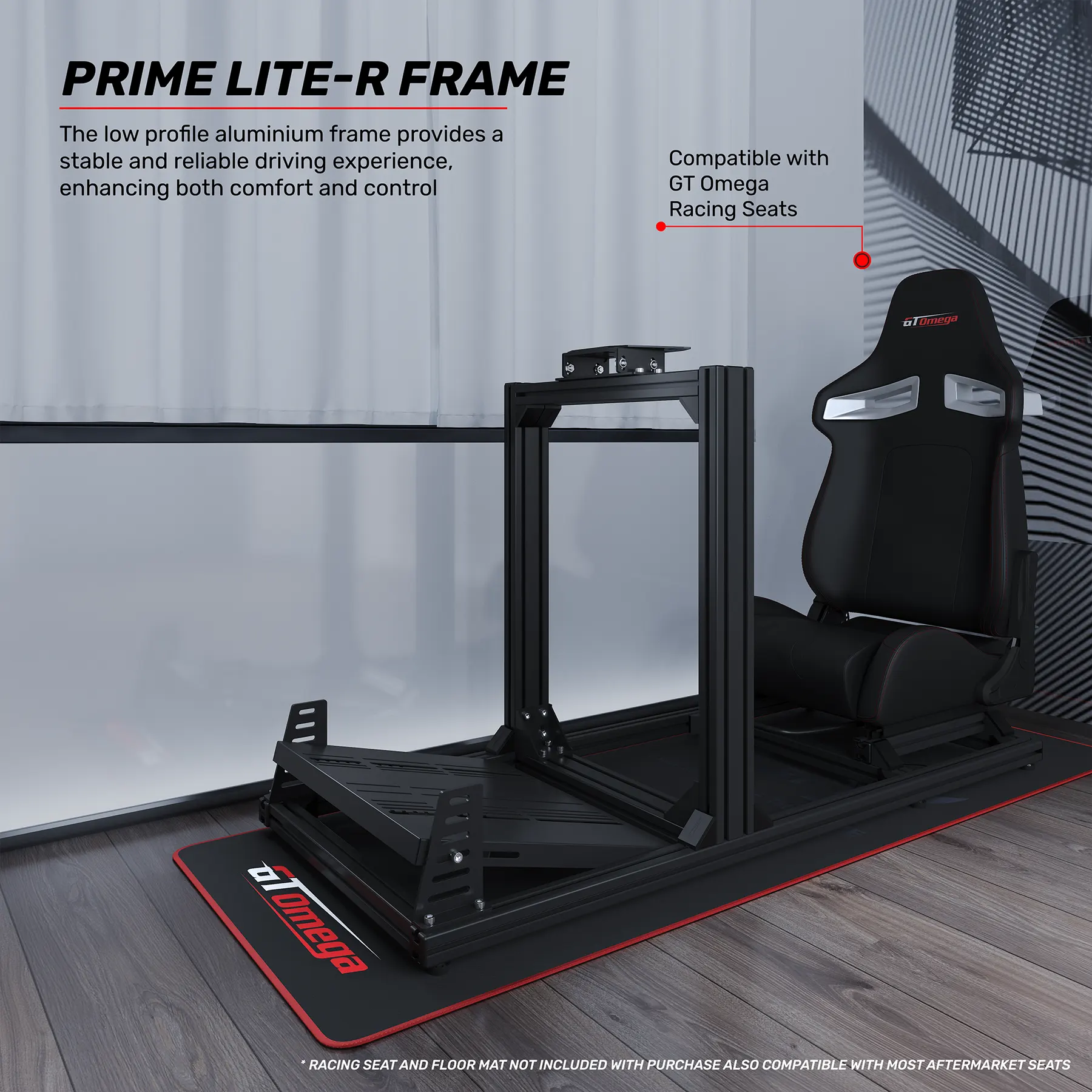 Introducing the GT Omega PRIME Lite-R, a budget-friendly entry into the world of aluminium profile sim racing cockpits. A streamlined and ultra-lightweight version of our best-selling PRIME Cockpit.
